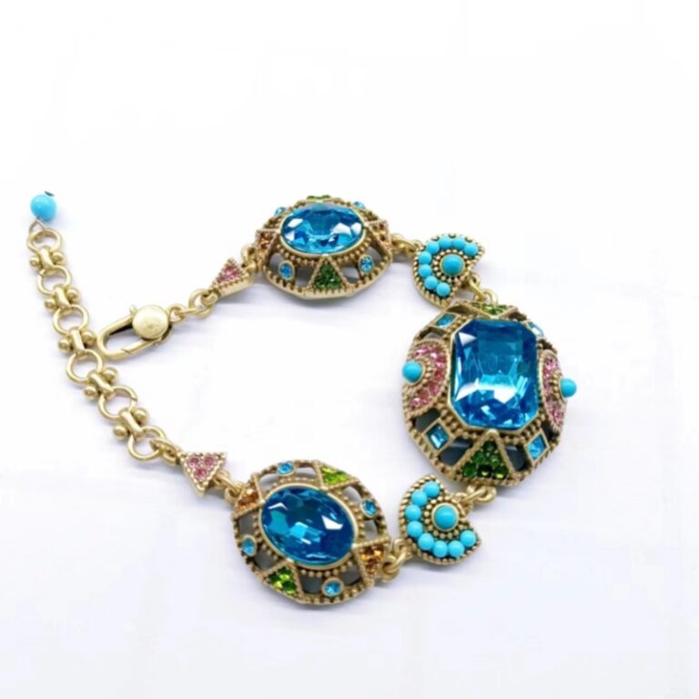 Vintage Gilded Sapphire Enamel Bracelet (Bohemian Multi-Gem Decor Style)
